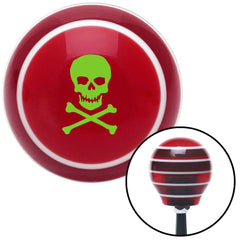 Green Skull n Cross Bones Red Stripe Shift Knob with M16 x 15 Insert