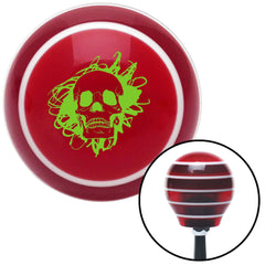 Green Skull in a Mess Red Stripe Shift Knob with M16 x 15 Insert
