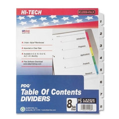 Kleer-Fax, Inc. Index Dividers, Letter, 1-8 Tab, Assorted