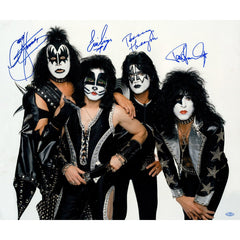 Kiss Band Signed Group Pose Aqua 16x20 Photograph