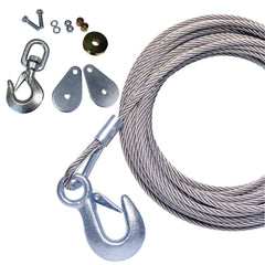 Powerwinch 50' x 7-32" Stainless Steel Universal Premium Replacement Galvanized Cable w-Hook & Swivel Pulley Block