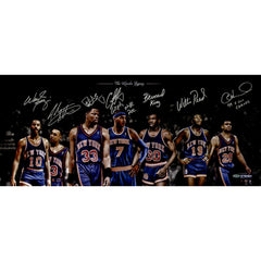 Walt FrazierCarmelo AnthonyBernard KingAllan HoustonWillis Reed Jonh Starks Patrick Ewing Multi Signed Knicks Legacy 14x32 Colla