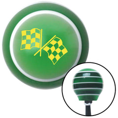 Yellow Dual Checkered Flags Green Stripe Shift Knob with M16 x 15 Insert