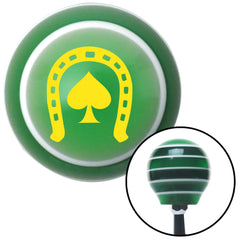 Yellow Horseshoe Over Spade Green Stripe Shift Knob with M16 x 15 Insert